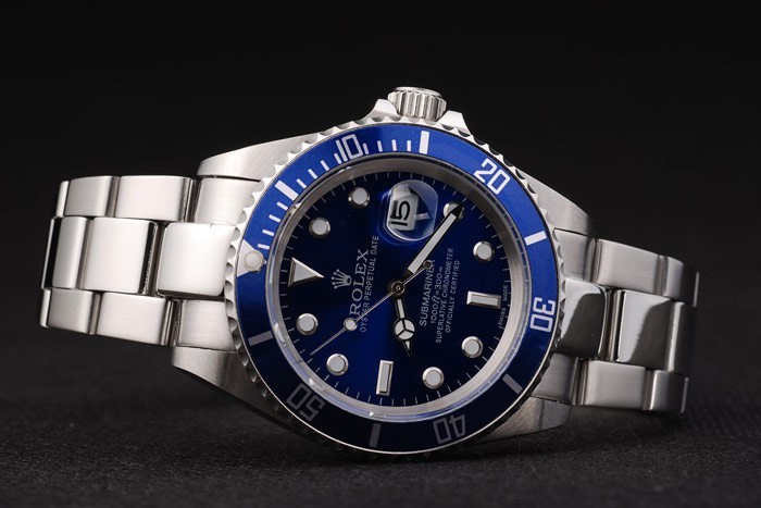 bezel: cutwork rustfrit stål bezel med hvide luminiscerende numeriske sekunder markerer Royal Blue Farvet Bezel