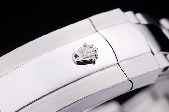 Armbånd: Børstet og poleret rustfrit stål link armbånd med Rolex logo implementering lås