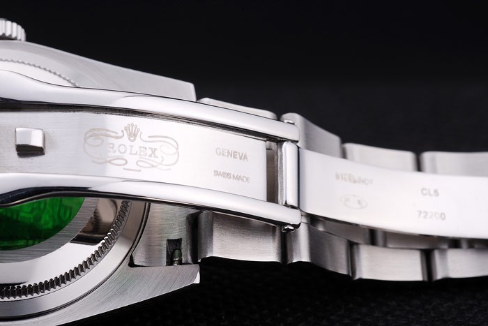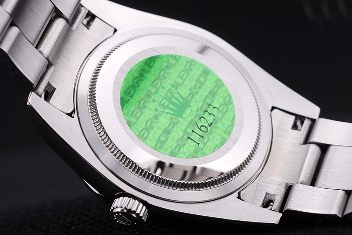 Tilbage: Rustfrit stål Snap-In Back med Green Rolex Logo Authenticity Stempel