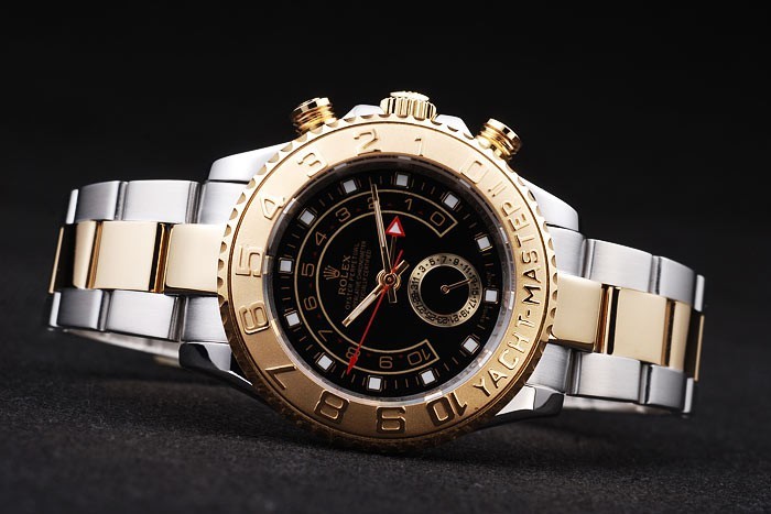 bezel: rose forgyldt ensrettet cutwork bezel med 1 til 10 markeringer og yacht master gravering på En blå emaljed baggrund