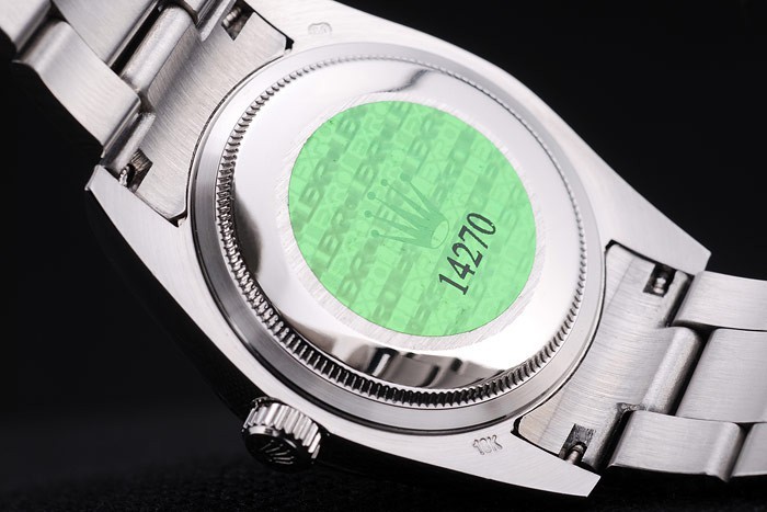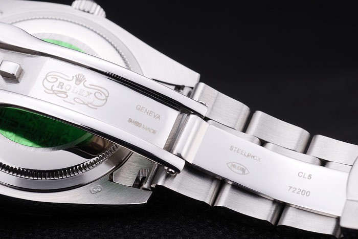 Tilbage: Rustfrit stål Snap-In Back med Green Rolex Logo Authenticity Stempel