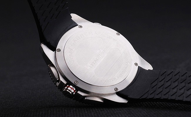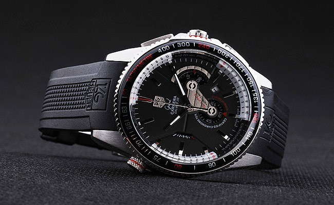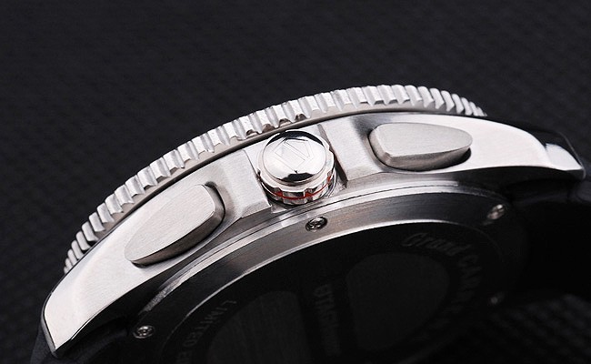bezel: Poleret rustfrit stål Cutwork Bezel med blank sort tachymeter
