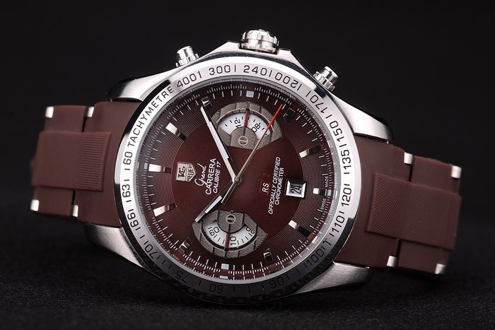 Armbånd: Brun Polyurethan Rem med rustfri Stål link links, varmeprægede frimærke tag Heuer og indgraveret rustfrit stål Hook-Buckle Clasp