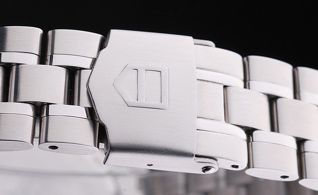 Armbånd: Børstet og poleret rustfrit stål link armbånd med tag Heuer indgraveret fold-in lås