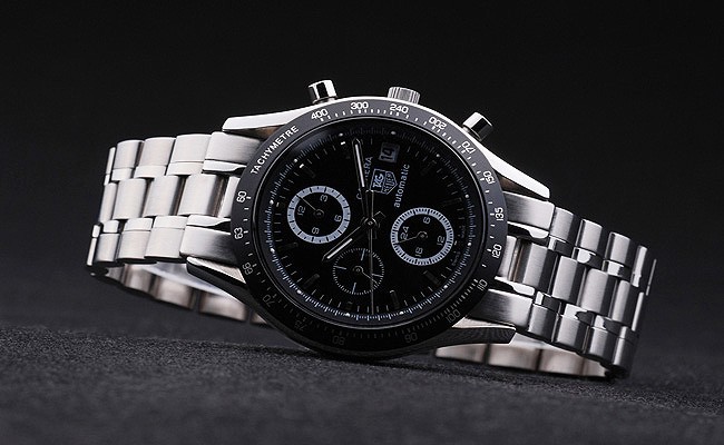 bezel: børstet rustfrit stål bezel med sort emaljeret tachymeter
