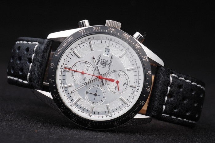 Armbånd: Textured Black Læderrem med varmeprægede frimærke og Formel 1 Tag Heuer Graveret Hook-Buckle Clasp