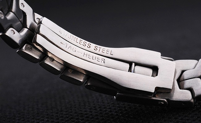 Armbånd: Børstet rustfrit stål Link Armbånd med Tag Heuer Graveret Fold -in Clasp