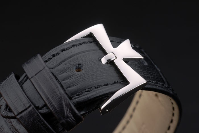 Armbånd: Vachelow Constantin og logo varme præget sort krokodille læderrem med poleret rustfrit stål Hook-Buckle logo lås