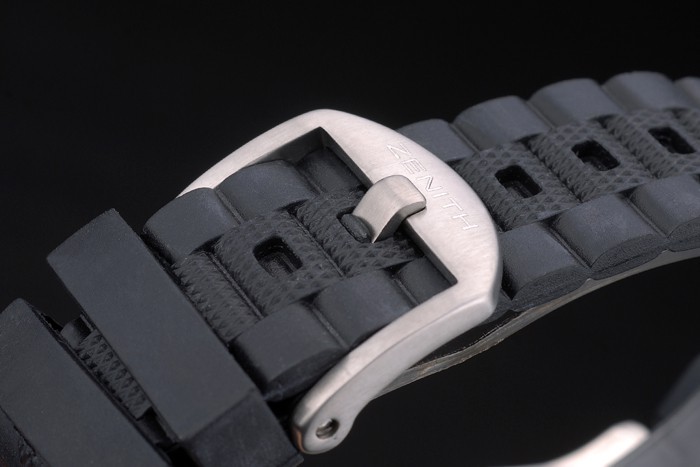 Armbånd: Tekstureret sort gummi link armbånd med krog spænde lås og ‘zenith’ påskrift nr. X 44 mm