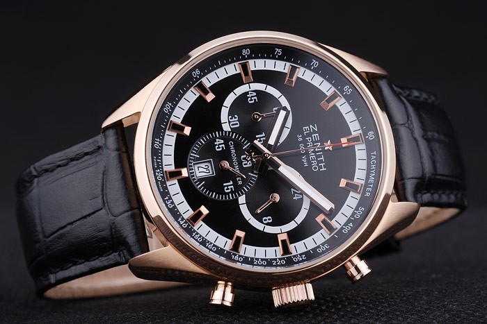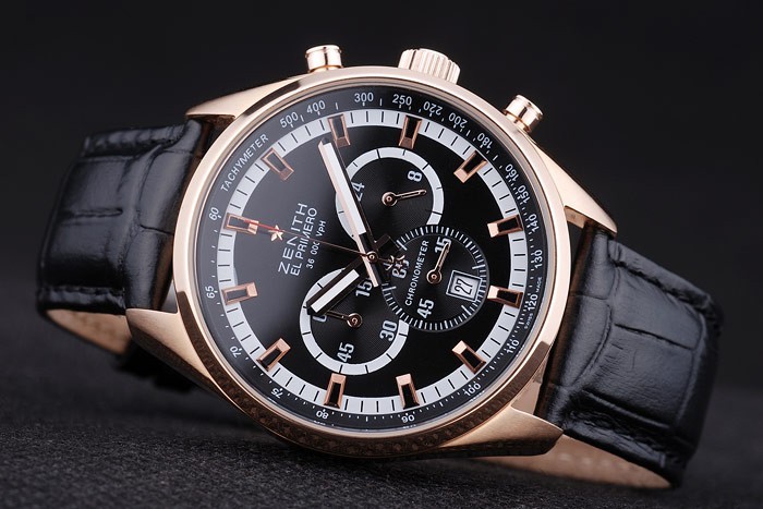 armbånd: varme præget zenith sorte krokodille læderrem med rose guldbelagt kroge spænde lås